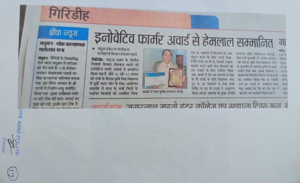 Welcome to Jspr Agro Private Limited, a pioneering force in the agricultural and construction sectors, where innovation, sustainability, and excellence converge. Established under the visionary leadership of Mr. Hemlal Mahto, a stalwart in the agricultural industry, our company stands as a testament to a harmonious blend of tradition and cutting-edge solutions.